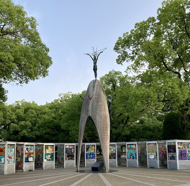 あまり深く考えず、朝なので東に向かう。橋の向こうに山が見えてきました。比治山公園です。真っ平な広島市街地ですが、ちょっとした山なので登ってみる。